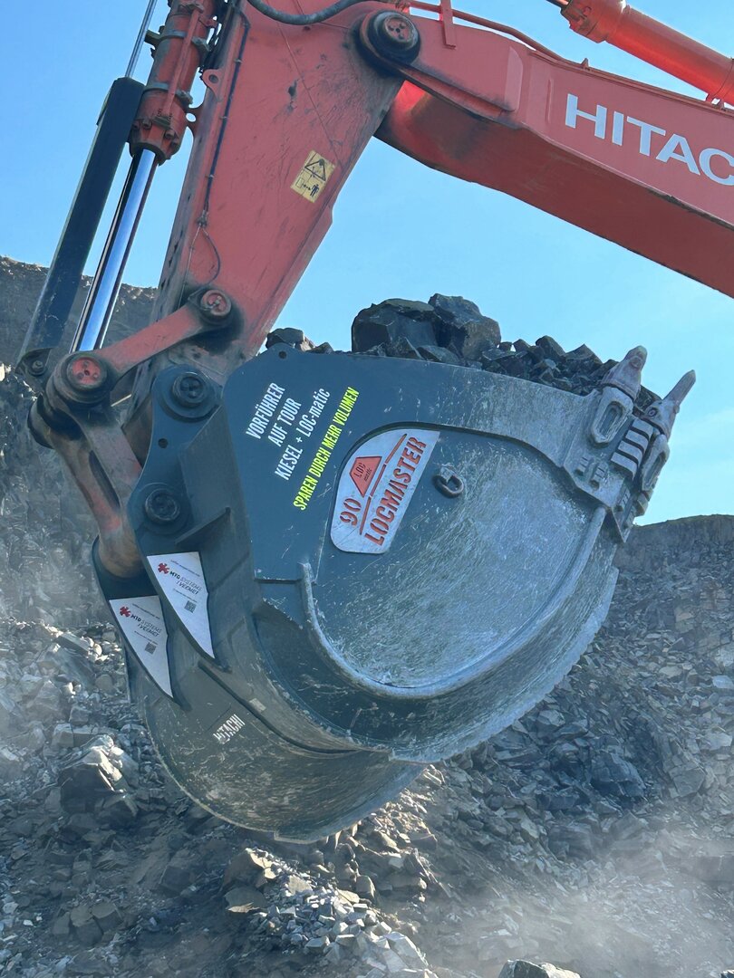 Mit dem LOCMASTER präsentiert LOC-matic gemeinsam mit Kiesel einen Gewinnungslöffel, der die Leistung einer nächsthöheren Baggerklasse erreicht – bei weniger Kraftstoffverbrauch pro verladenem Tonneinsatz. Denn in der Gewinnung entscheidet vor allem die Wirtschaftlichkeit: Nur wenn Maschine und Anbaugerät optimal zusammenarbeiten, lassen sich Betriebskosten dauerhaft senken. Genau dafür wurde der LOCMASTER entwickelt – um mit vorhandener Technik mehr zu leisten und Prozesse im Steinbruch neu zu denken.