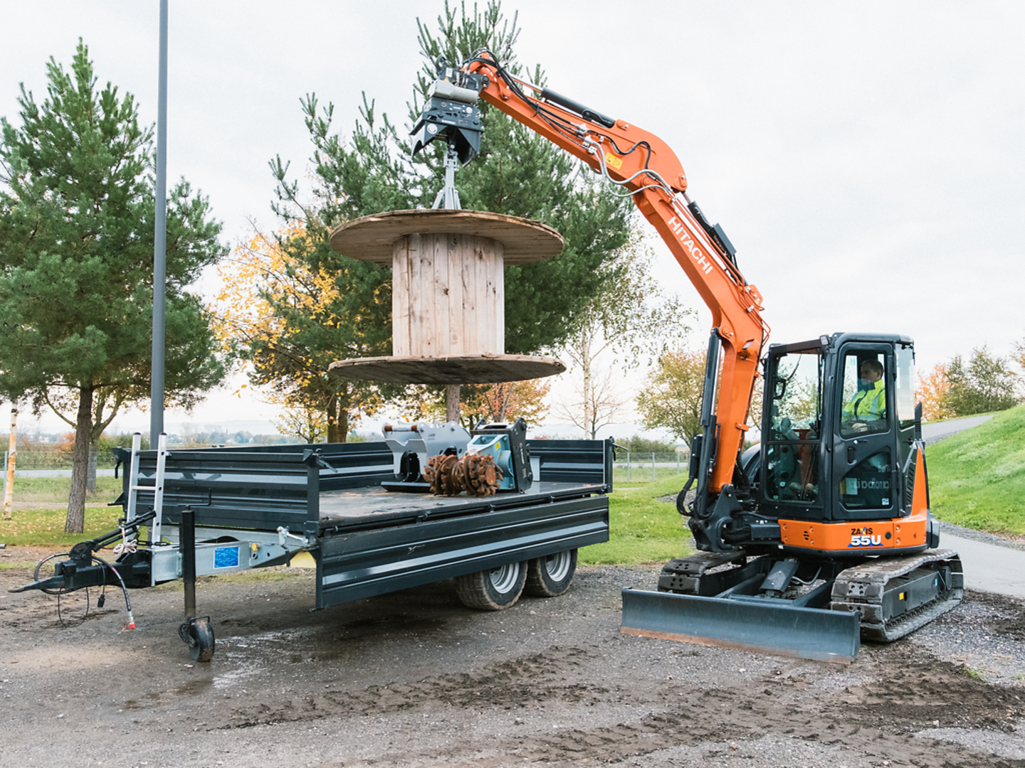 - Aufnehmen und Positionieren von Kabeltrommeln ohne Hilfskraft. Keine Person im Gefahrenbereich!