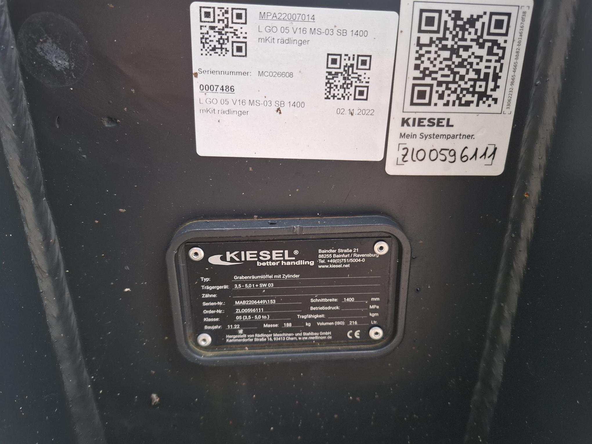 Rädlinger, Grabenräumlöffel schwenkbar KGL05H-1400, MS03 (neuwertig)