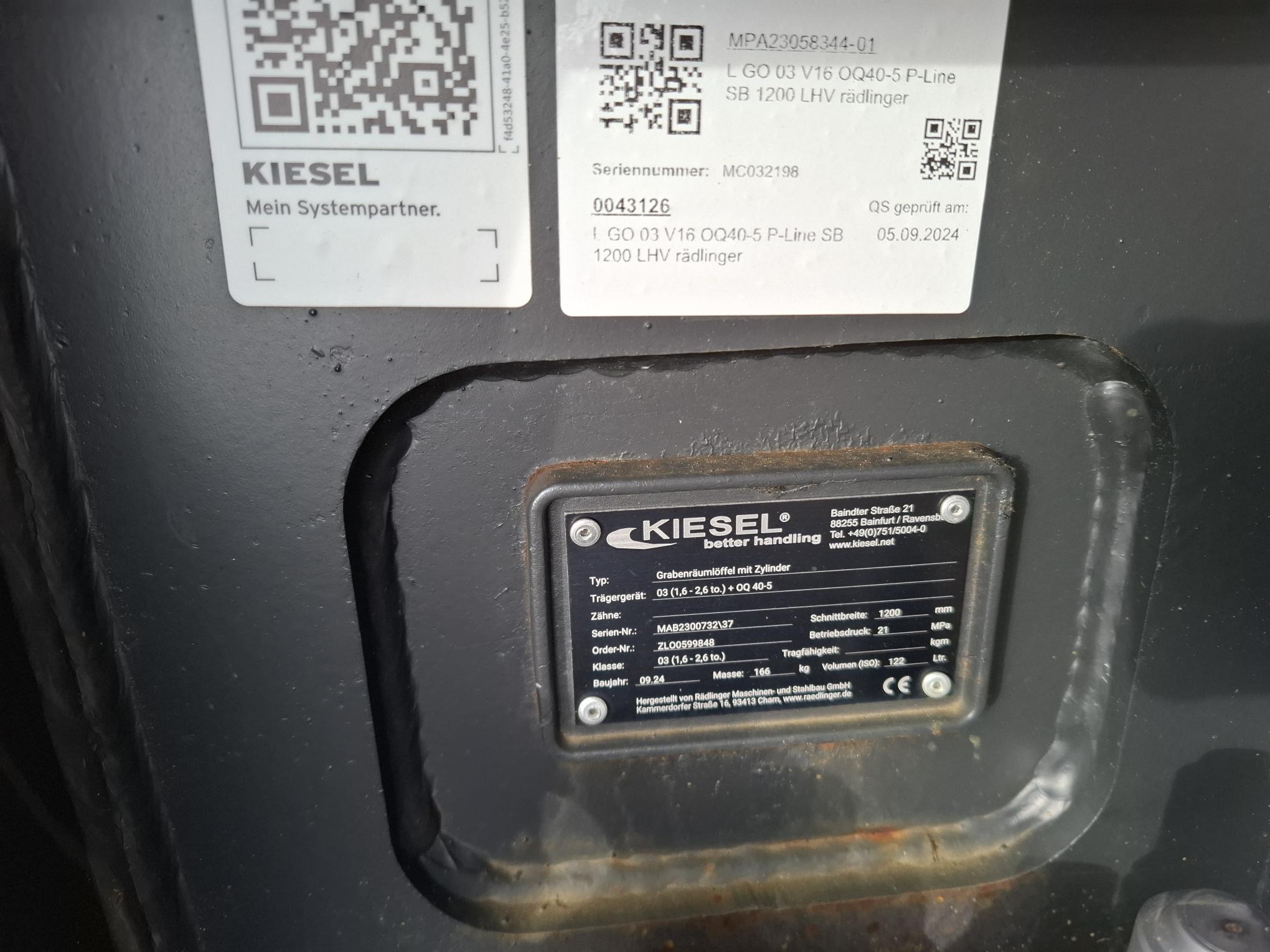 Rädlinger, Grabenräumlöffel schwenkbar 1200 mm KGL03H-1200, OQ40-5