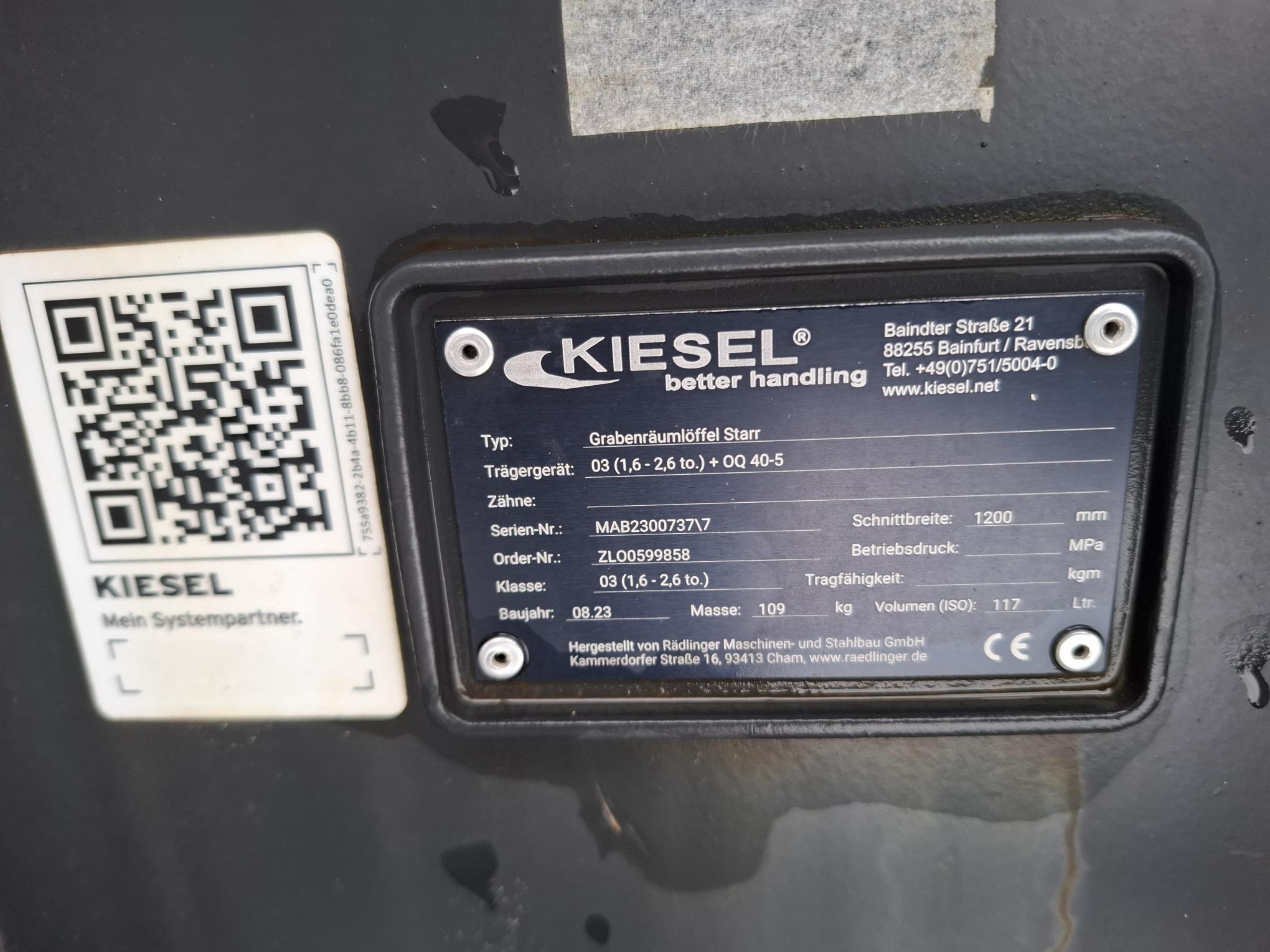 Rädlinger, Grabenräumlöffel Starr 1200 mm KGL03S-1000, OQ40-5