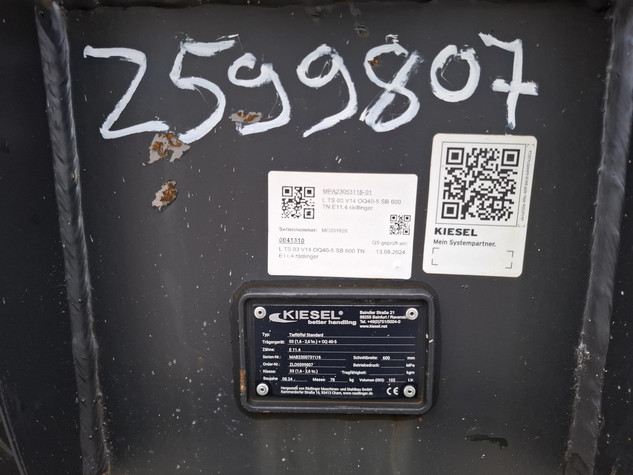 Rädlinger, Tieflöffel 600 mm KTL03-600, OQ40-5 (neuwertig)