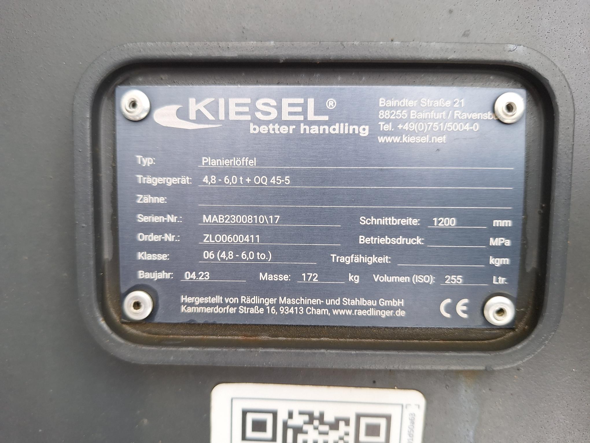 Rädlinger, Planierlöffel 1200 mm, OQ45-5