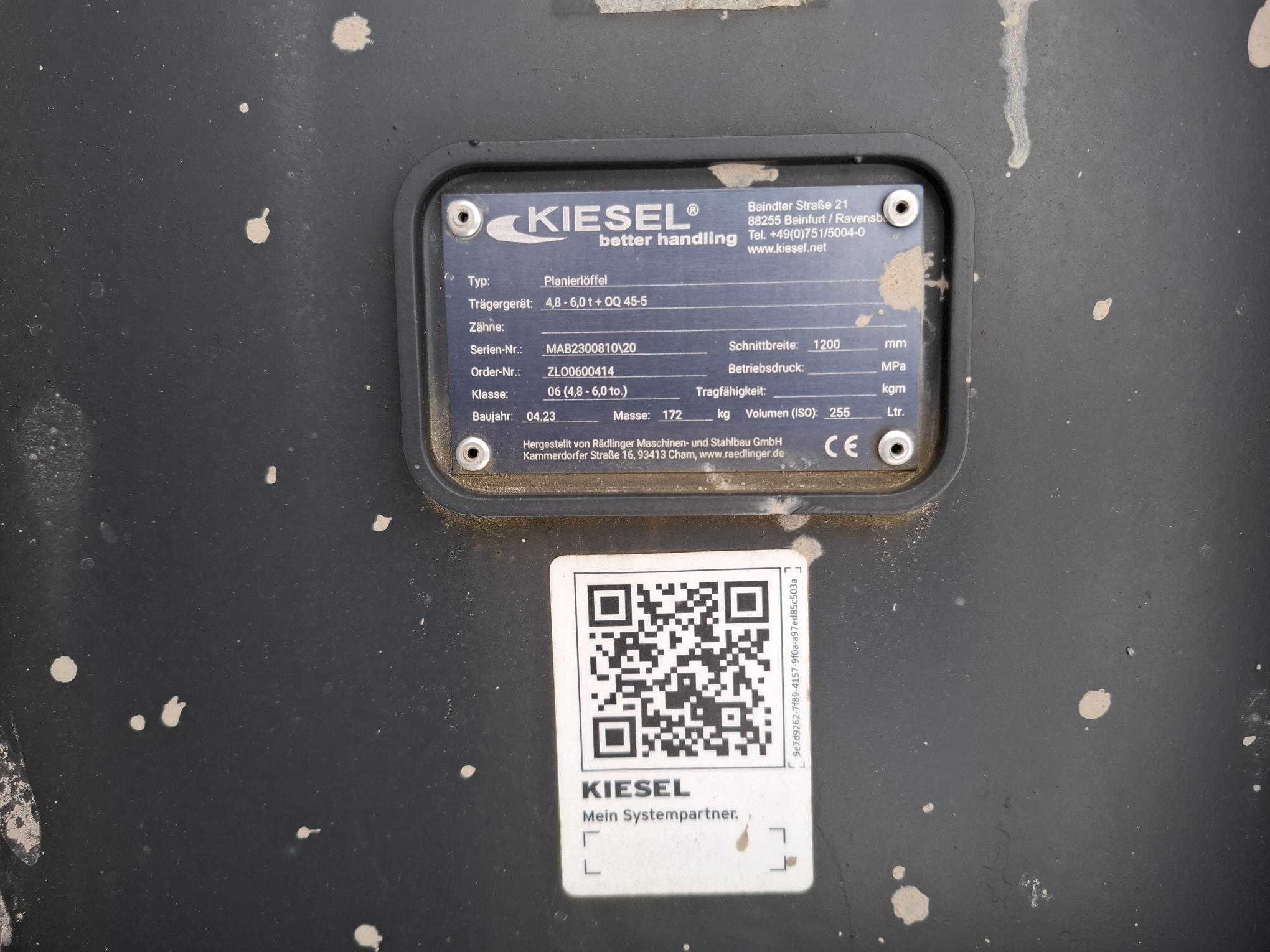 Rädlinger, Planierlöffel 1200 mm, OQ45-5