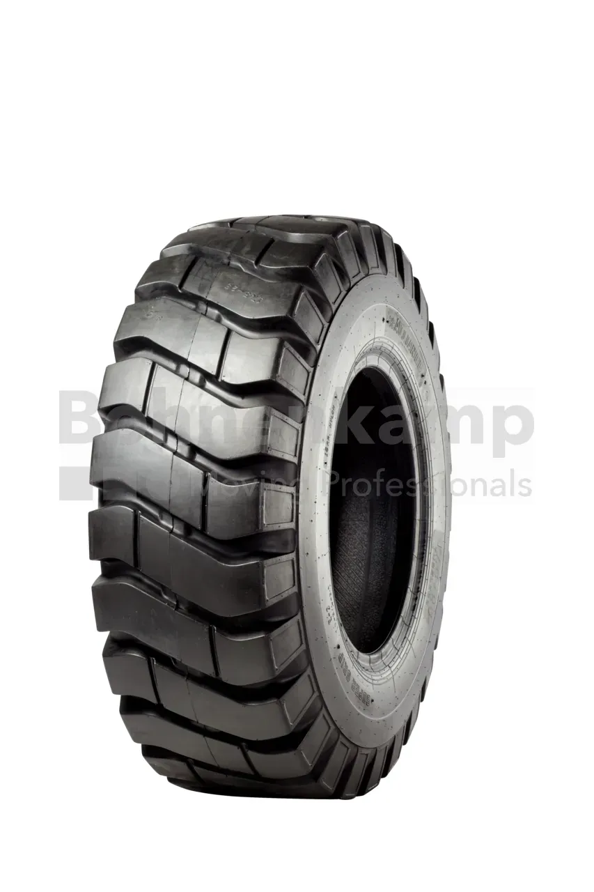 - Massiver Reifen für den Einsatz auf Dumpern, Radladern und Gradern.