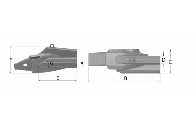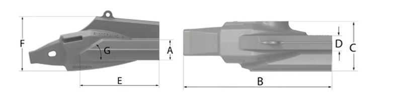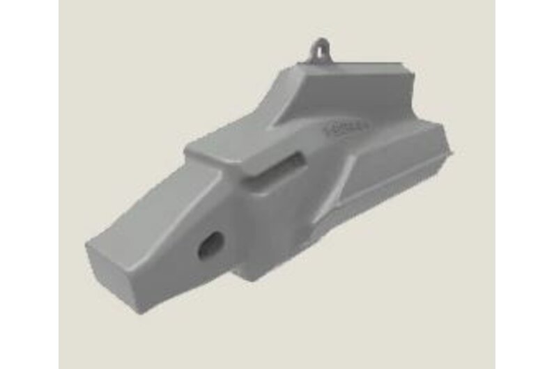 Gegossener Eckadapter mit einer mechanischen Verschleißkappe. Der geschweißte Adapter ist so konstruiert, dass er den härtesten Arbeitsbedingungen standhält.